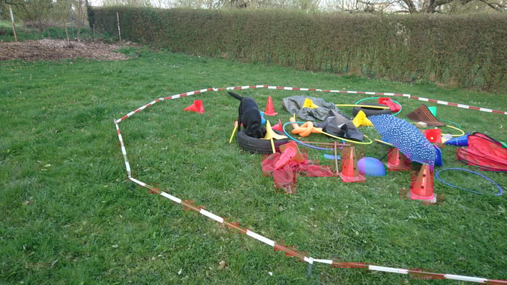 Hilfsmittel, bitte mitbringen: Führleine (1,5-2 m), Schleppleine (3-5 m), Halsband, Geschirr, besondere Leckerchen, Lieblingsspielzeug, Decke